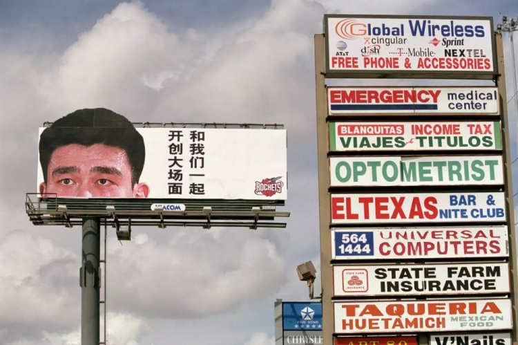 2002年,火箭队在休斯敦全市张贴了印有姚明形象的广告牌,并配以球队的中文口号——“开创大场面”(用中文书写)。